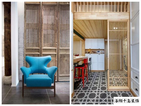 硬裝上會(huì)用復(fù)古的元素裝飾墻面或地面。比如充滿中國風(fēng)的木門。