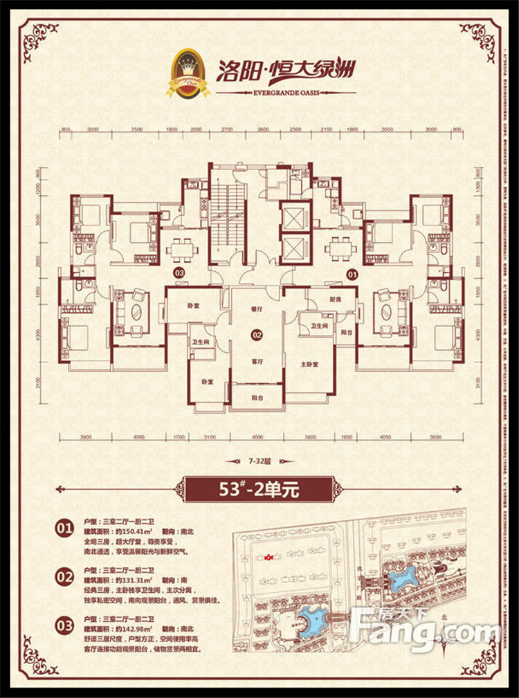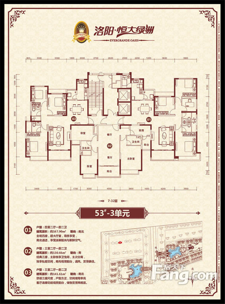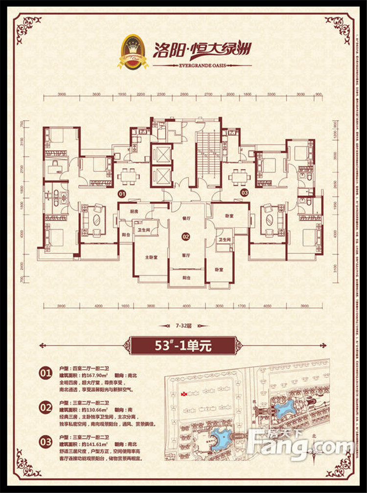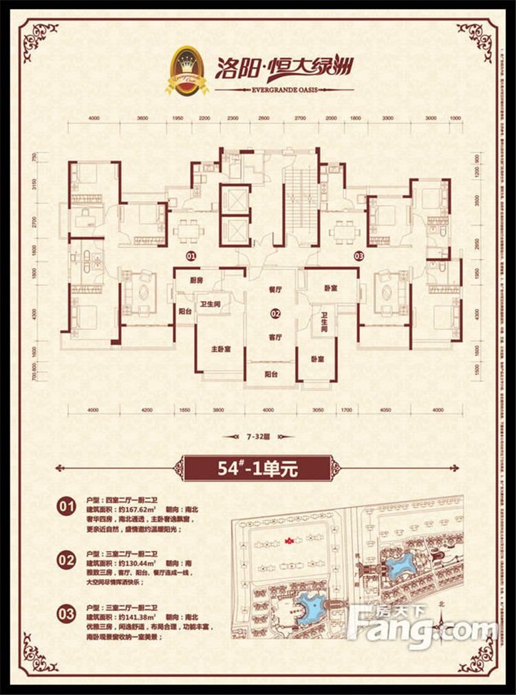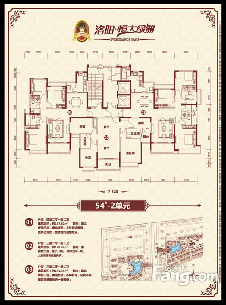 恒大綠洲項目位于洛陽市瀍河區(qū)洛陽市東出口,洛河以北、中州東路兩側(cè)、二廣高速以西,項目獨享洛河北岸3500多米河岸線,且處于洛陽市城市東西中軸線中州路東段,臨中州路街面長2000余米,有多路公交車直達。恒大綠洲全部項目占地面積約1338畝,規(guī)劃建筑面積近301萬平方米,居住單位2.06萬余戶,除居住建筑外,項目內(nèi)還配置了運動中心、綜合樓(會所)、幼兒園、小學、中學、商業(yè)配套、五星級酒店等,整個項目建成后,將形成約6.6萬人的居住規(guī)模。全部項目累計總投資超過100億元人民幣,預計上交稅收超過15億元人民幣。