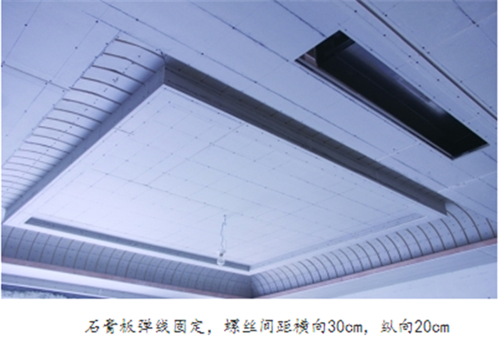 8.石膏板要用沉頭自攻螺絲固定,進(jìn)入板面1~2mm,并做防銹處理,不能用槍釘