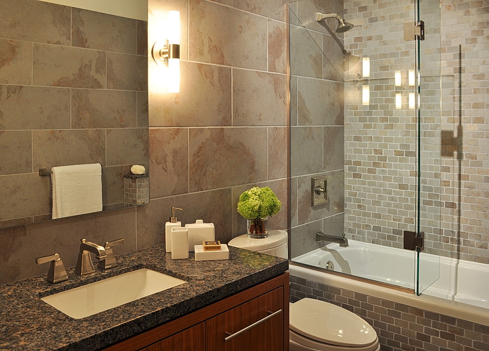 1.地面。要注意防水、防滑。地面裝飾材料選用有凸起花紋的防滑地磚,這種地磚不僅有很好的防水性能,而且即使在沾水的情況下,也不會(huì)太滑。要有約1/100的泄水坡度,斜坡朝向地板下水口;地磚接縫要粗細(xì)一致,并且和壁磚接縫要對(duì)齊;浴缸的墻采用磚砌貼瓷磚方式,地磚好先貼至墻下方,再貼壁磚,以免產(chǎn)生破口。