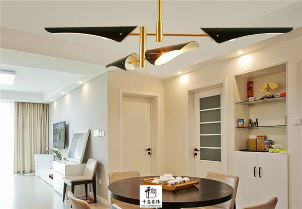 北歐風格的基調(diào)需以淺白色為主,因此要大量搭配一些如金屬、玻璃以及顏色鮮明的家飾。比如金屬的吊燈。