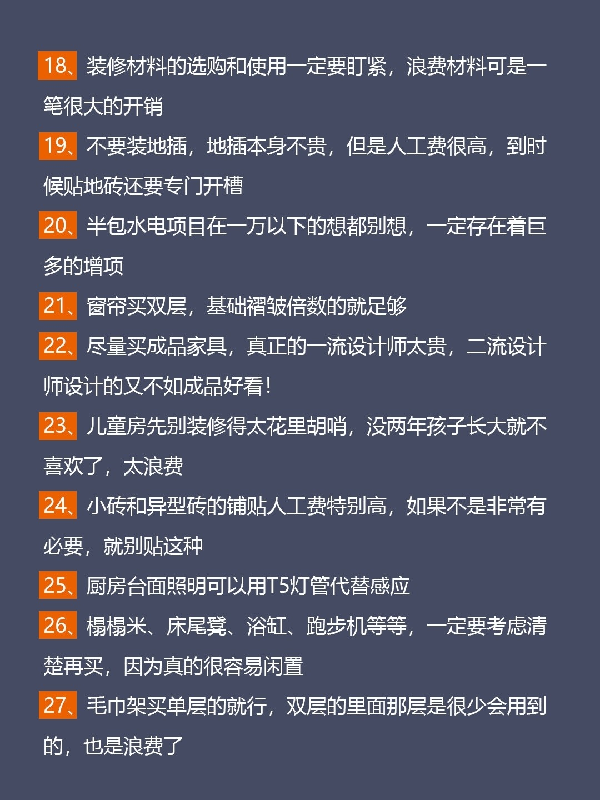 為什么裝修前期看著便宜,后期越裝預(yù)算越多?常見裝修的增項(xiàng)有哪些?下面一一列舉: