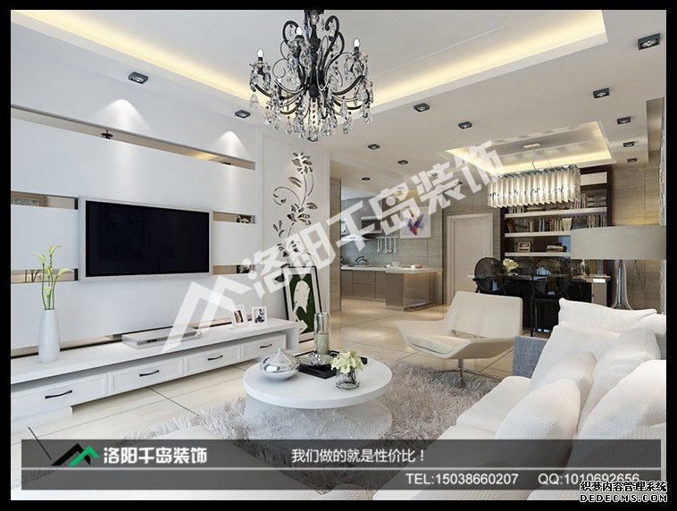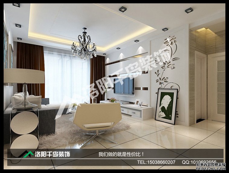 簡單的客廳擺設(shè),讓視線開闊,心情也變的輕松。現(xiàn)代簡約的精髓就在于簡約而不簡單!洛陽千島裝飾,我們爭做洛陽的裝飾公司!