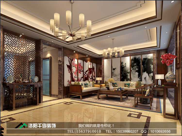 洛陽開元名郡225㎡復式新中式裝修案例@一樓客廳
