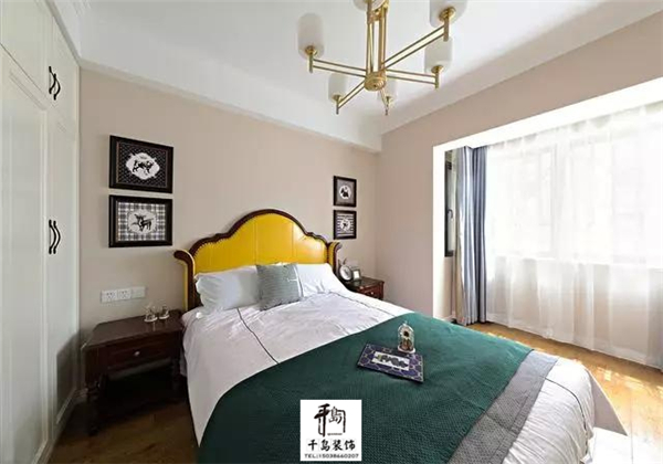 素雅的臥室,黃色的床頭點(diǎn)亮整個(gè)睡眠空間的色調(diào),陽(yáng)光透過薄紗般的窗簾照射在潔白的床上是那么的溫暖舒適。