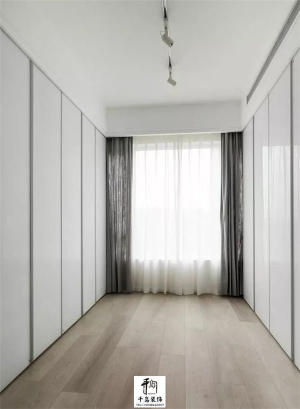 衣帽間收納空間可以說(shuō)是很大了,兩面墻都是收納柜,滿足收納需求,又給人清爽干凈之感。