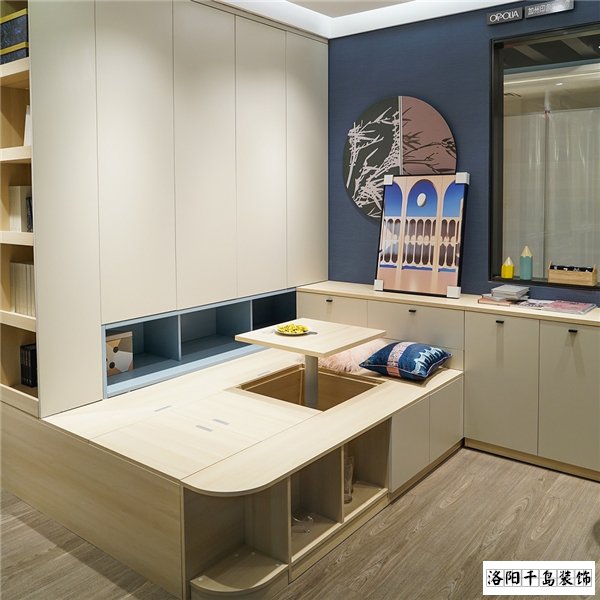 我選的是這款定制榻榻米,清爽的色調(diào),看著就讓人覺(jué)得舒服。環(huán)繞式的一體設(shè)計(jì),配備的還挺齊全,有衣柜、床、書(shū)桌等。