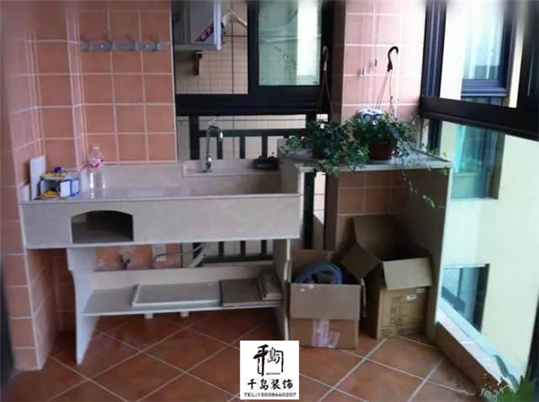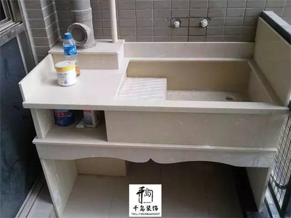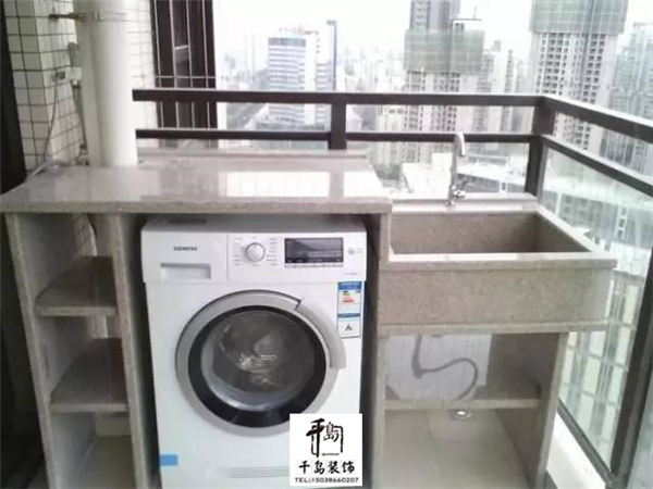 使用花崗巖制作的臺(tái)面,還可以把洗衣機(jī)放在里面,這樣以后在陽臺(tái)上面洗衣服很方便。