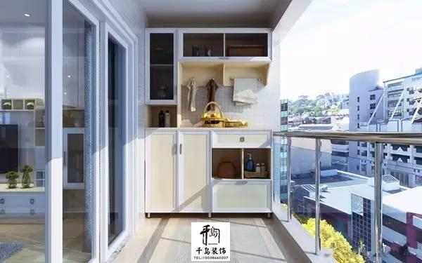陽臺(tái)的空間大的話,還可以這樣設(shè)計(jì),一邊做成儲(chǔ)物柜,另一邊設(shè)計(jì)成洗漱池,一舉兩得。
