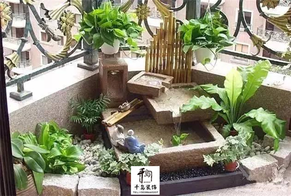 這是在陽臺(tái)上面設(shè)計(jì)的水景,生活充滿了詩情畫意啊!
