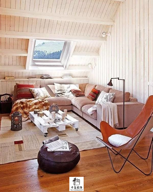風(fēng)景獨(dú)到的閣樓做成小客廳再好不過,看慣了枯燥的大客廳,小客廳搭配美景,讓談話更有誠(chéng)意。