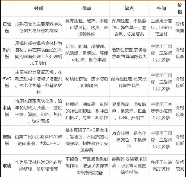 1,根據(jù)不同的房間造型設(shè)計選擇。平頂?shù)姆块g可以選擇PVC扣板、鋁板搭配輕鋼龍骨。拱形頂房間可以選用加強(qiáng)型石膏板、軟板或彈性好的鋁合金板。