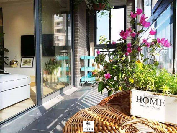 客廳陽(yáng)臺(tái)一分為二,準(zhǔn)確的說(shuō)是功能上一分為二,一半是曬衣區(qū),一半是休閑區(qū)(種花種草),滿足了多種功能需求,而且曬衣區(qū)剛好客廳看不到,所以整體也更加美觀;