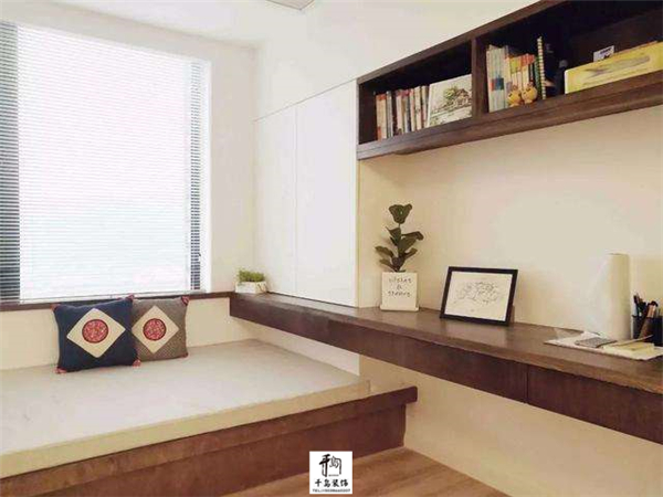 書房做成榻榻米,客人來(lái)時(shí),它是客房,平時(shí)則充當(dāng)著書房的作用;
