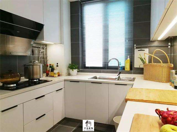 另外,這里還有一個(gè)亮點(diǎn),即是吊柜中,百葉門板處是藏著的燃?xì)鉄崴?,讓廚房看起來(lái)更加整潔、干凈;
