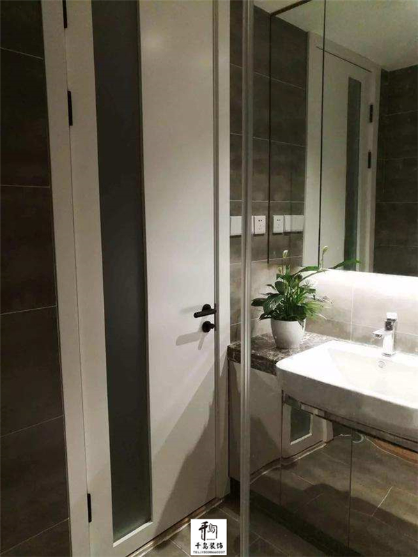次衛(wèi)是個(gè)暗衛(wèi),沒(méi)有窗戶,所以選購(gòu)了一長(zhǎng)條磨砂玻璃的門,解決了采光問(wèn)題;
